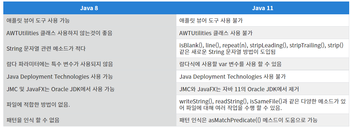 변경이 불안하신 분들은 자바 8 버전과 11 버전의 차이점을 확인해보시기 바랍니다.